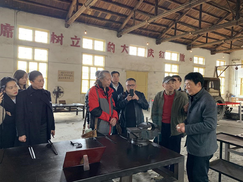 上午9时30分,在小平小道纪念馆的安排下,勘景小组在会议室与涂宗礼座谈,涂师傅向剧组讲述了大量珍贵的细节。座谈会结束后,涂宗礼带领堪景小组实地参观小平同志当年劳动的车间,还亲自演示小平同志当年劳动的动作。