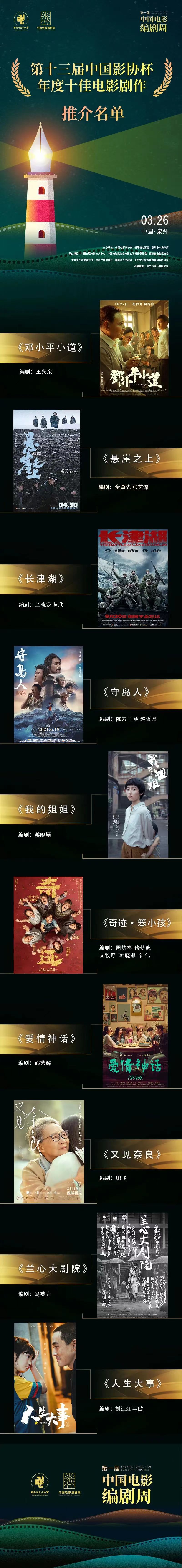 第13届“中国影协杯”年度十佳电影剧作名单